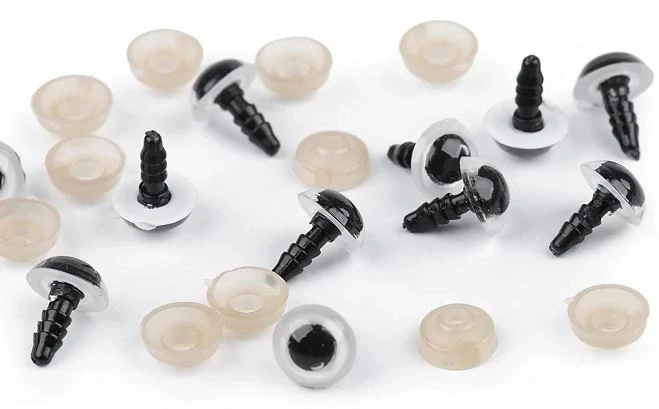 Plastové oči využijete pro výrobu různých zvířátek a postaviček např. plyšáků. Pro pevné přichycení mají oči na vrutu závity, které se pevně uchytí v materiálu používaném při výrobě plyšáků. Z druhé strany se nacvakne pojistka, která oči bezpečně zachytí na místo.