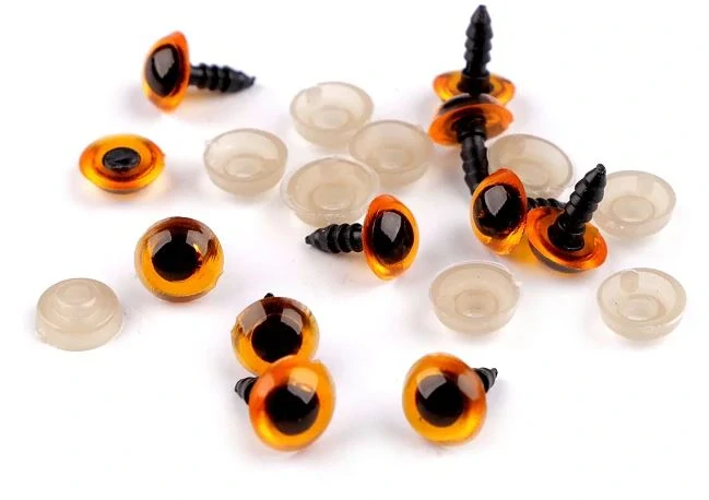 Plastové oči využijete pro výrobu různých zvířátek a postaviček např. plyšáků. Pro pevné přichycení mají oči na vrutu závity, které se pevně uchytí v materiálu používaném při výrobě plyšáků. Z druhé strany se nacvakne pojistka, která oči bezpečně zachytí na místo.
