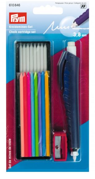 Balení 1x mechanická tužka s gumou pro křídu 3,8mm, 8x bílá křída, 8xkřída barevná-různé barvy, 1x ořezávátko