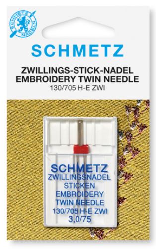 Dvoujehla pro dekorační stehy 130/705H ZWI, šíře mezi jehlami 3,0mm, síla jehly 2x75.
