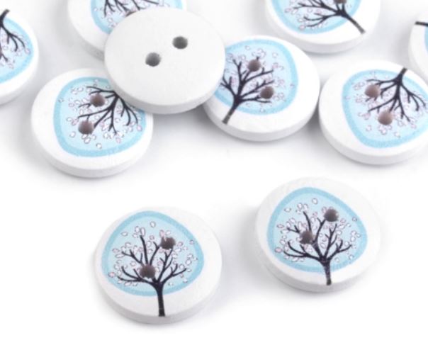 Dřevěné dekorační knoflíky s potiskem stromu můžete použít ve scrapbookingu. Ozdobí vaše foto rámečky, přáníčka, jmenovky, pozvánky, deníky apod. Motiv je jednostranný.