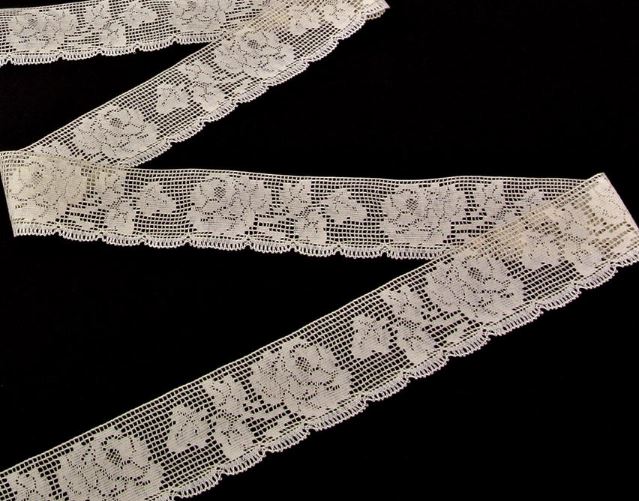 Paličkovaná krajka je vyrobená z bavlny. Krajku můžete použít jako ozdobu oděvů, deček či běhounů, doporučuje se žehlit přes tkaninu.
