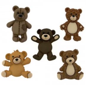 Dekorační knoflíčky s motivem medvídků. Balení obsahuje 5 ks. Vhodné pro scrapbook a další dekorace, např. dozdobení oblečení, šitých projektů, šperků.