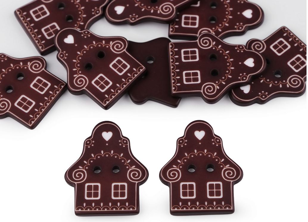 Knoflík plastový - chaloupka hnědá 4Skladem 13 ks18,00 Kč/ ks14,88 Kč bez DPH