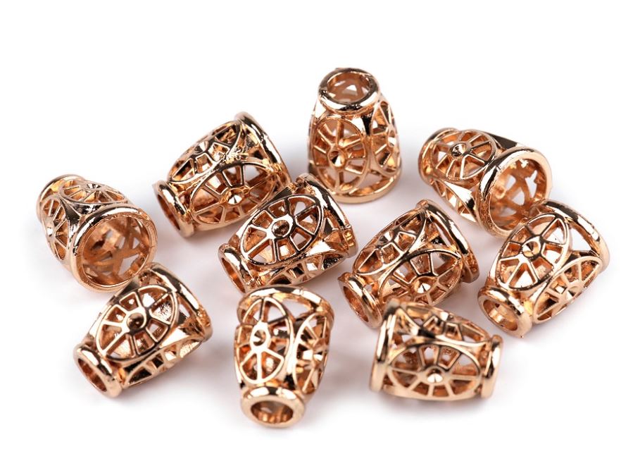 Koncovky na šnůrky kovové dekorační růžové zlatoSkladem 18 ks9,00 Kč/ ks7,44 Kč bez DPH