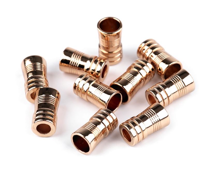 Koncovky na šnůrky kovové kónické růžové zlatoSkladem 20 ks9,00 Kč/ ks7,44 Kč bez DPH