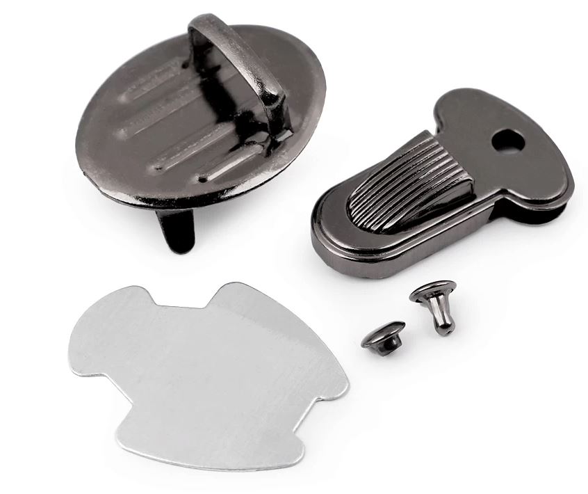 Zapínání na kabelku či tašku se skládá ze tří dílů. Jeden díl se připevní na vnitřní část kabelky, druhý na vnější část kabelky a třetí díl na chlopeň kabelky. Pak už jen stačí zasunout do sebe tak, až uslyšíte cvaknutí. Potom je teprve kabelka bezpečně uzavřena.