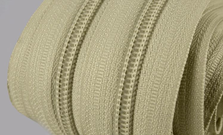 Spirálové zipy v metráži. Šířka spirály 3 mm, šířka celé stuhy je 2,5 cm.