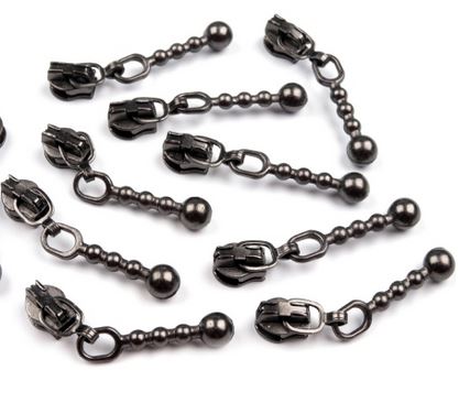 Kovový ozdobný jezdec má tvar tyčinky, kterou zakončuje kulička. Je s aretací, což znamená, že zdrhovadlo zůstává rozevřené pouze tolik, kolik si přejete. Prodej v kusech.
