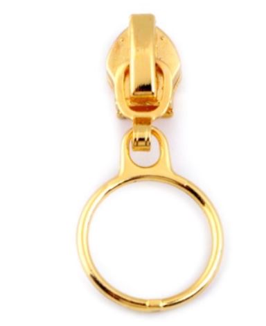 Kovový jezdec s táhlem v podobě kroužku je určený ke spirálovým zipům o šíři 3 mm v metráži. Průměr kroužku je 20 mm.