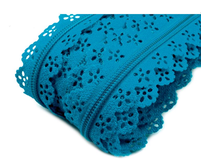 Krajkový metrážový zip 3mm tyrkysový 207Skladem 22.45 m16,00 Kč/ m13,22 Kč bez DPH