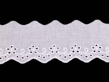 Bavlněnou madeiru zdobí okraj lemovaný dírkovanou výšivkou s květy.