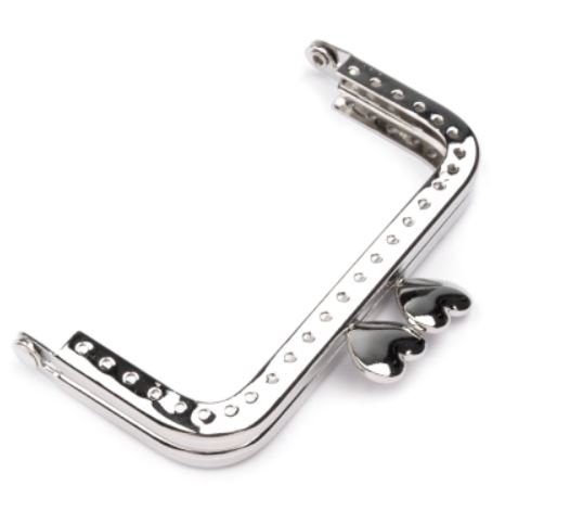 Kovový rámeček je vhodný na výrobu peněženky nebo menší kabelky. Díky zavírání se srdíčky působí romanticky. Na kratší straně je malé ouško, ke kterému můžete připevnit karabinku nebo řetízek. Rámeček je určený k našití, kdy se látka dovnitř vloží a ručně přešije přes dírky, jejichž rozpětí je 3 mm. Dírky jsou jen na vnější straně rámečku, která je delší než vnitřní, tudíž je našívání jednodušší.