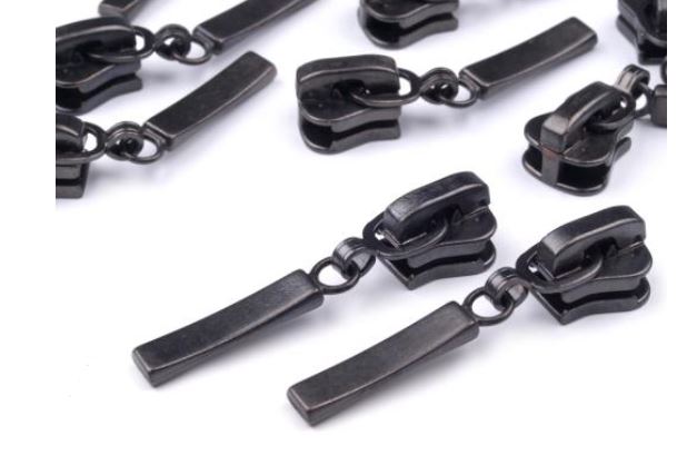 Kovový jezdec ke kostěným zipům s ozdobným táhlem. Samostatné jezdce potřebujete, pokud pracujete se zipy v metráži, a sami si tak určujete délku zipu. Tento jezdec je s aretací, což znamená, že zdrhovadlo zůstává rozevřené pouze tolik, kolik si přejete.