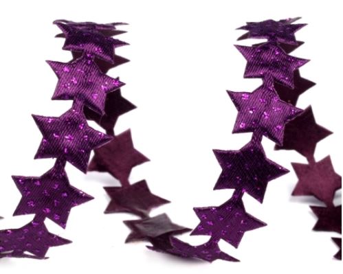 - Prýmek saténový 14 mm hvězda s glitry fialová