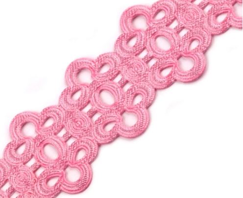 Prýmek saténový 21 mm vysekávaný vzor růžový 3