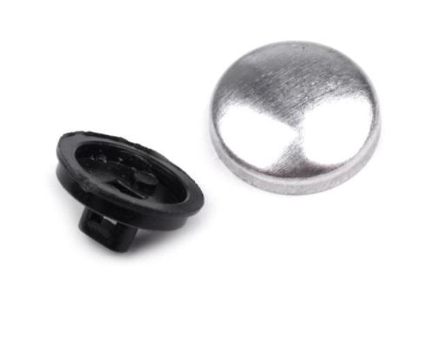 Knoflík na potahování se skládá ze dvou částí - kovové a plastové. K potažení můžete zvolit různé materiály.