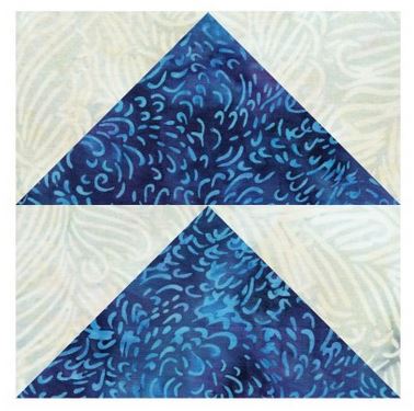 | Velikost řezaných dílů | One 6 1/2” W x 3 1/2” H (16.5 cm x 8.9 cm) quarter square triangle with dog eared corners. Two 3 1/2” W x 3 1/2” H (16.5 cm x 16.5 cm) half square triangles with dog-eared corners |