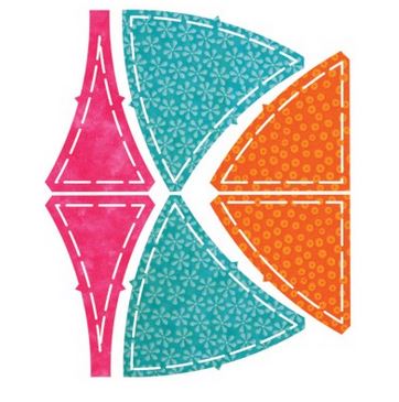 | Velikost řezaných dílů | 2x od každého: středový 4 11/16” W x 3 7/8”H každý ( 11.9 cm x 9.8 cm), rohový 3½” W x 3½” H každý (8.9 cm x 8.9 cm), klínek 2¾” W x 4½” H každý (7 cm x 11.4 cm) |