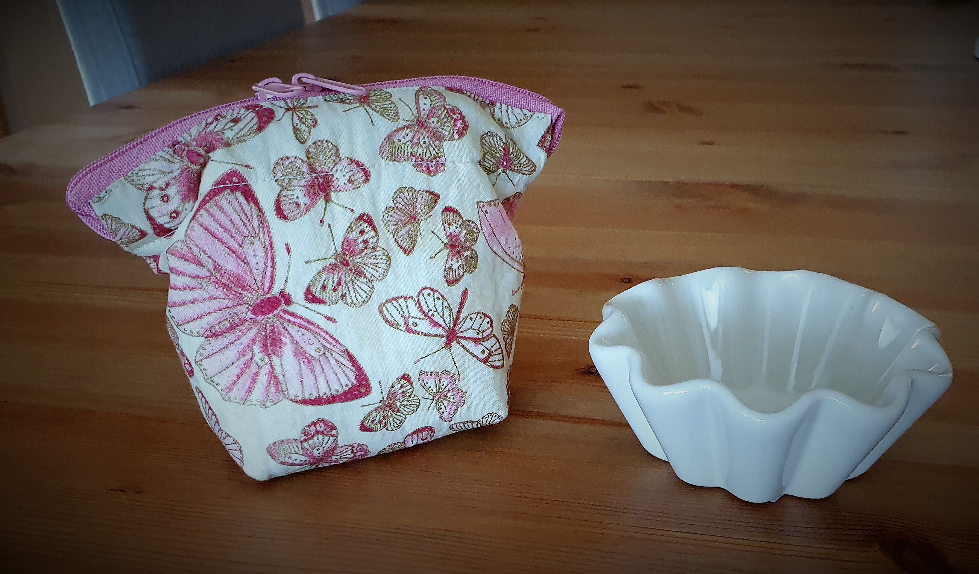 Šířka taštičky cca 10 cm, výška 11 cm.