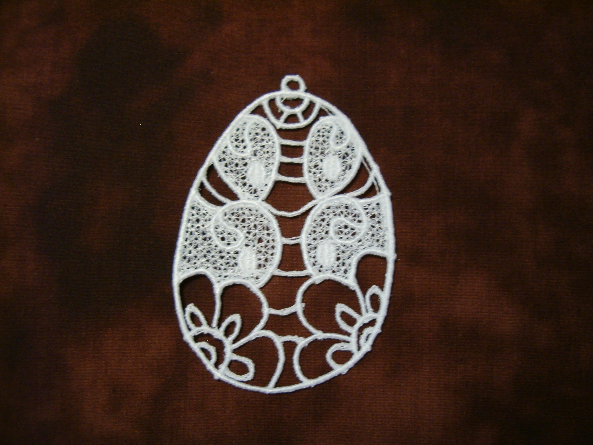 Jedná se o produkt strojového vyšívání, tzv. strojová krajka. Výšivka je cca 10 cm vysoká se šňůrkou na zavěšení.