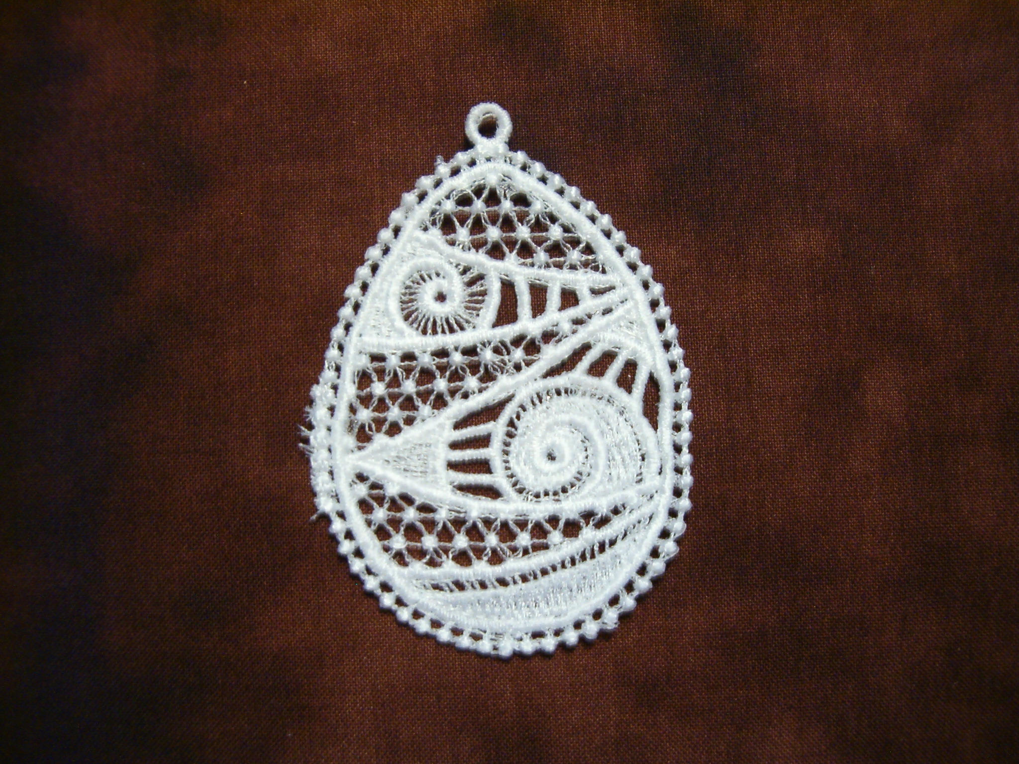 Jedná se o produkt strojového vyšívání, tzv. strojová krajka. Výšivka je cca 7 cm vysoká se šňůrkou na zavěšení.