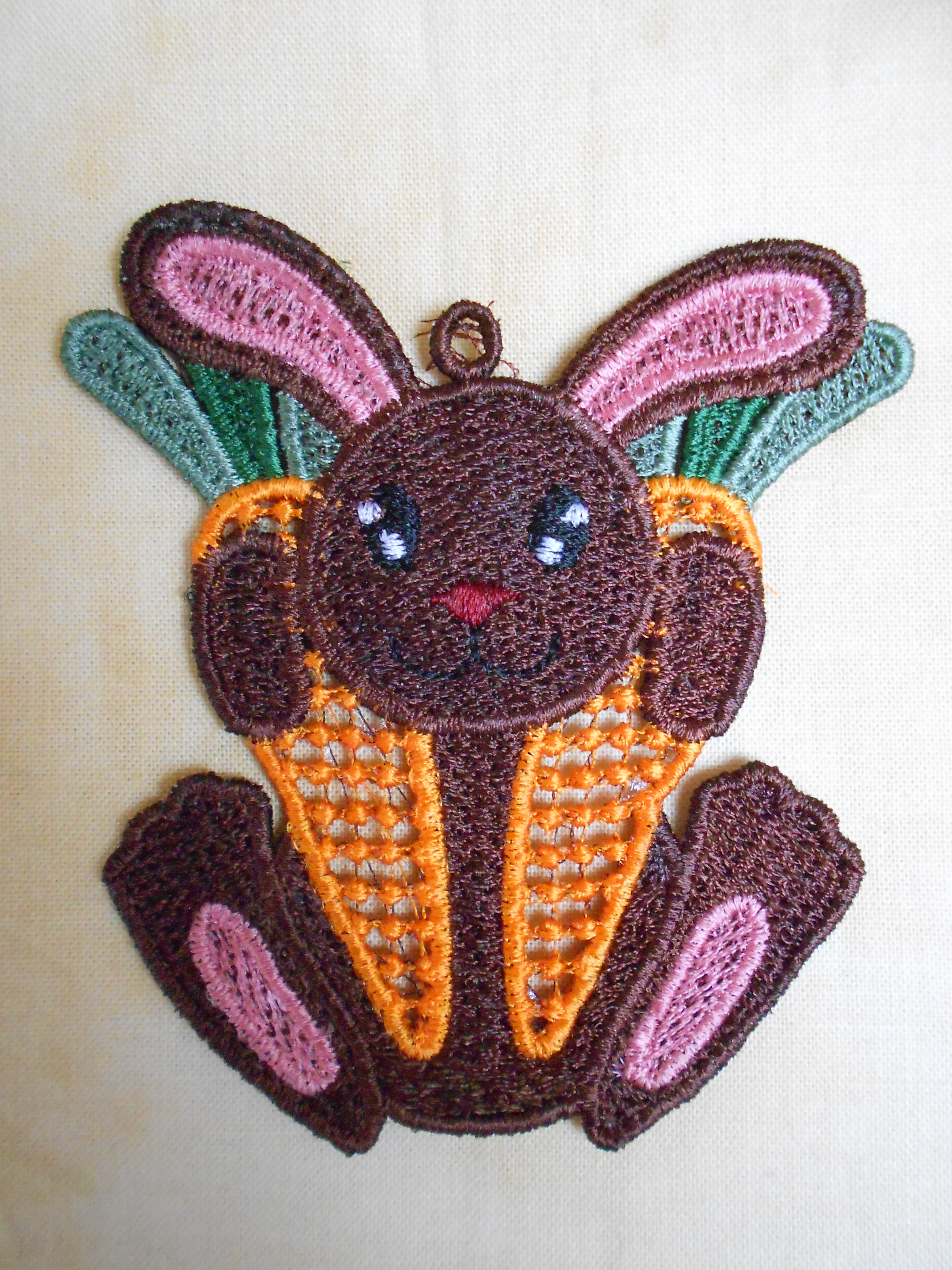 Jedná se o produkt strojového vyšívání, tzv. strojová krajka. Výšivka je cca 10 cm vysoká se šňůrkou na zavěšení.