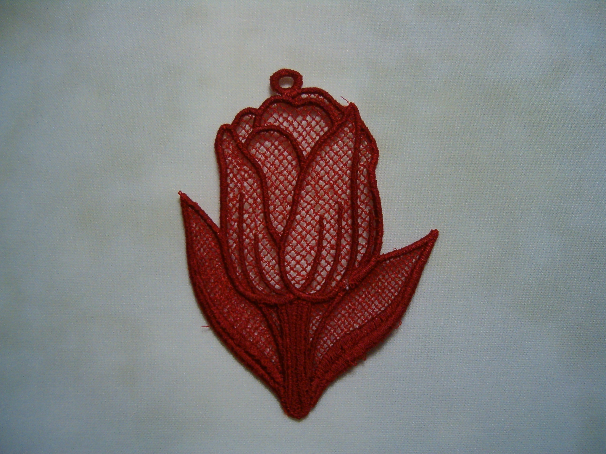 Jedná se o produkt strojového vyšívání, tzv. strojová krajka. Výšivka je cca 10 cm vysoká se šňůrkou na zavěšení.