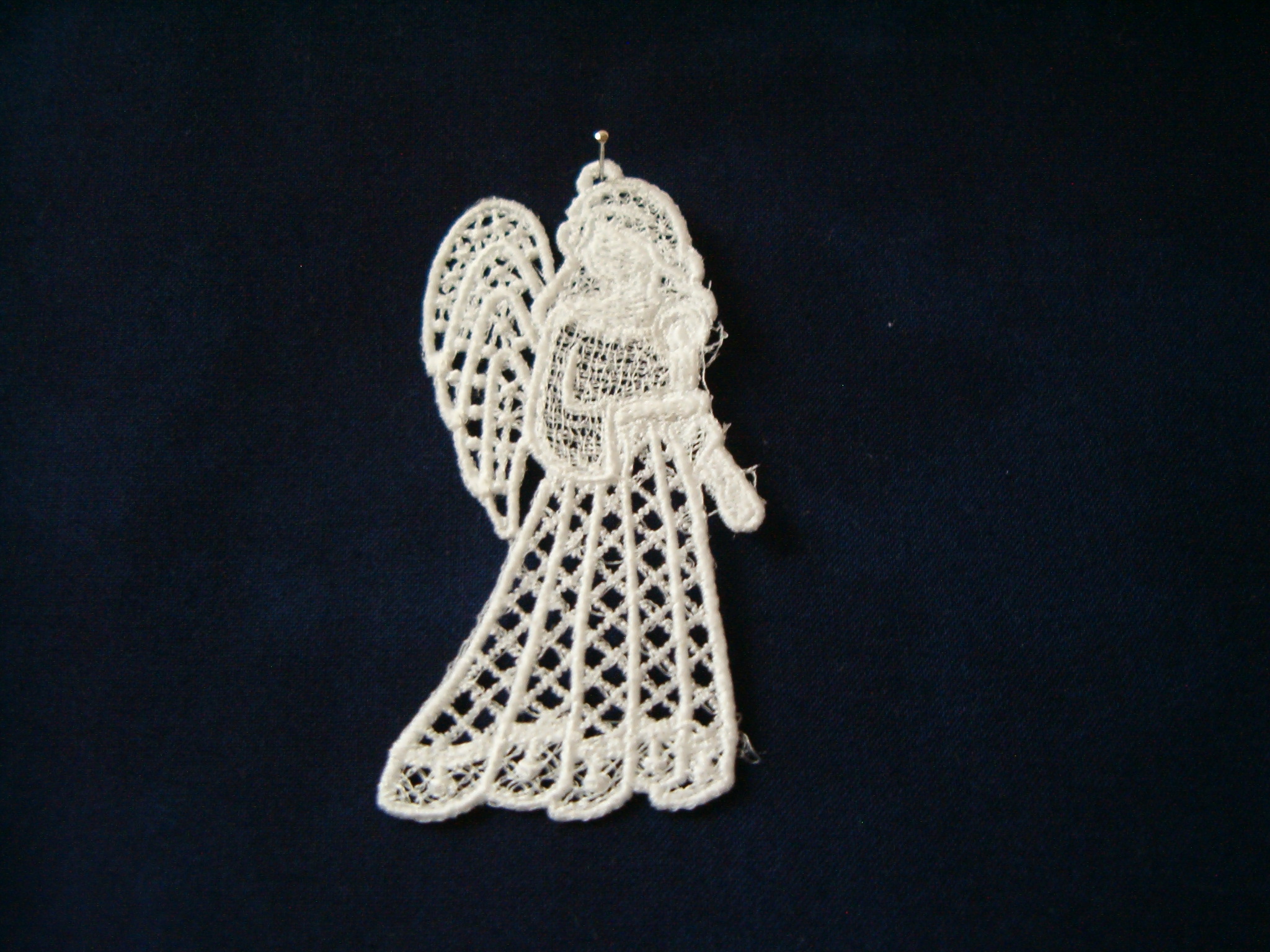 Jedná se o produkt strojového vyšívání, tzv. strojová krajka. Výšivka je cca 10 cm vysoká se šňůrkou na zavěšení.