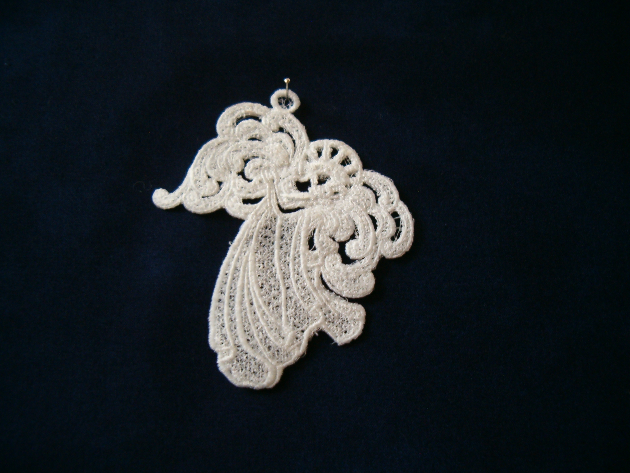 Jedná se o produkt strojového vyšívání, tzv. strojová krajka. Výšivka je cca 10 cm vysoká se šňůrkou na zavěšení.