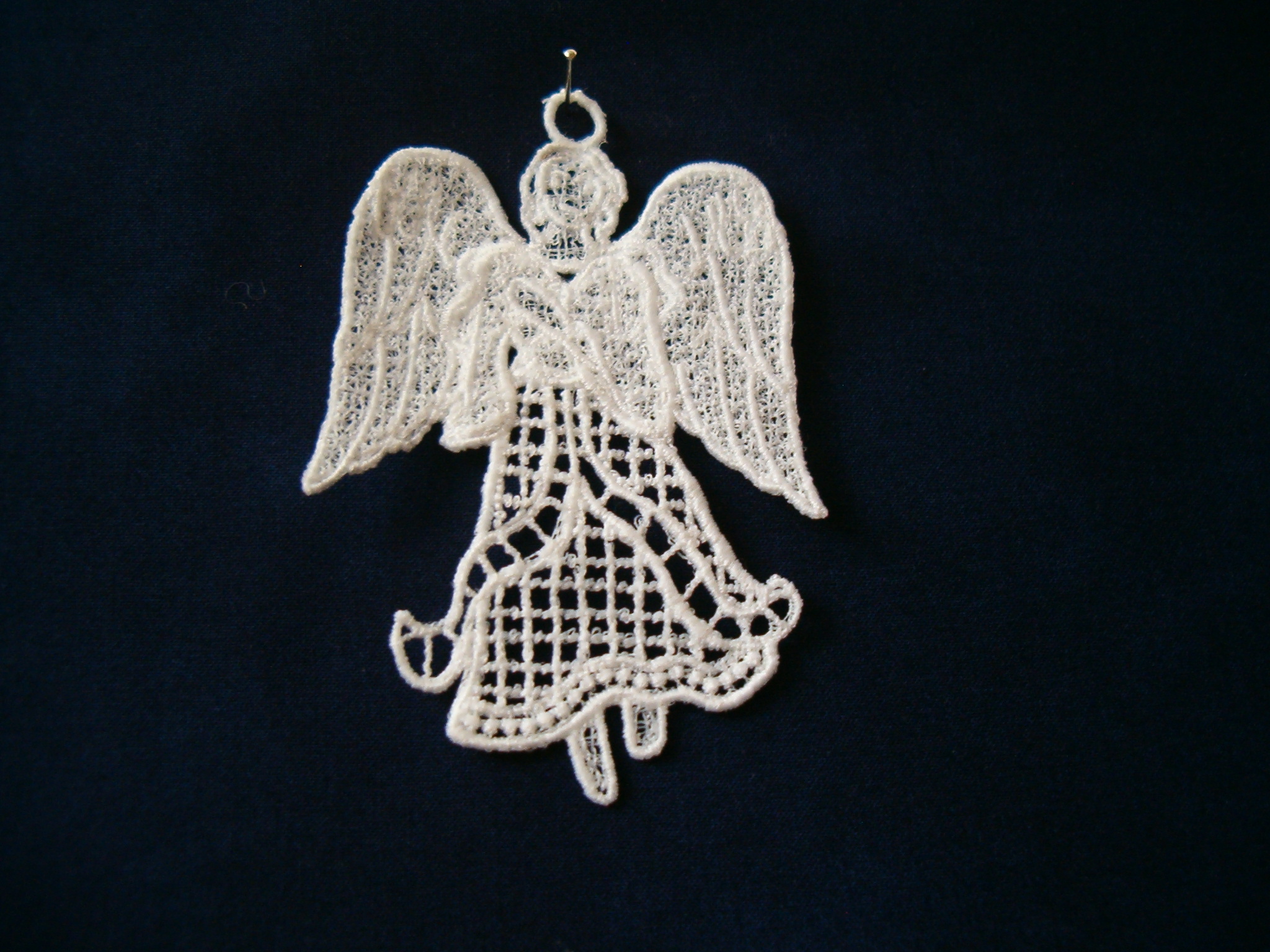 Jedná se o produkt strojového vyšívání, tzv. strojová krajka. Výšivka je cca 10 cm vysoká se šňůrkou na zavěšení.