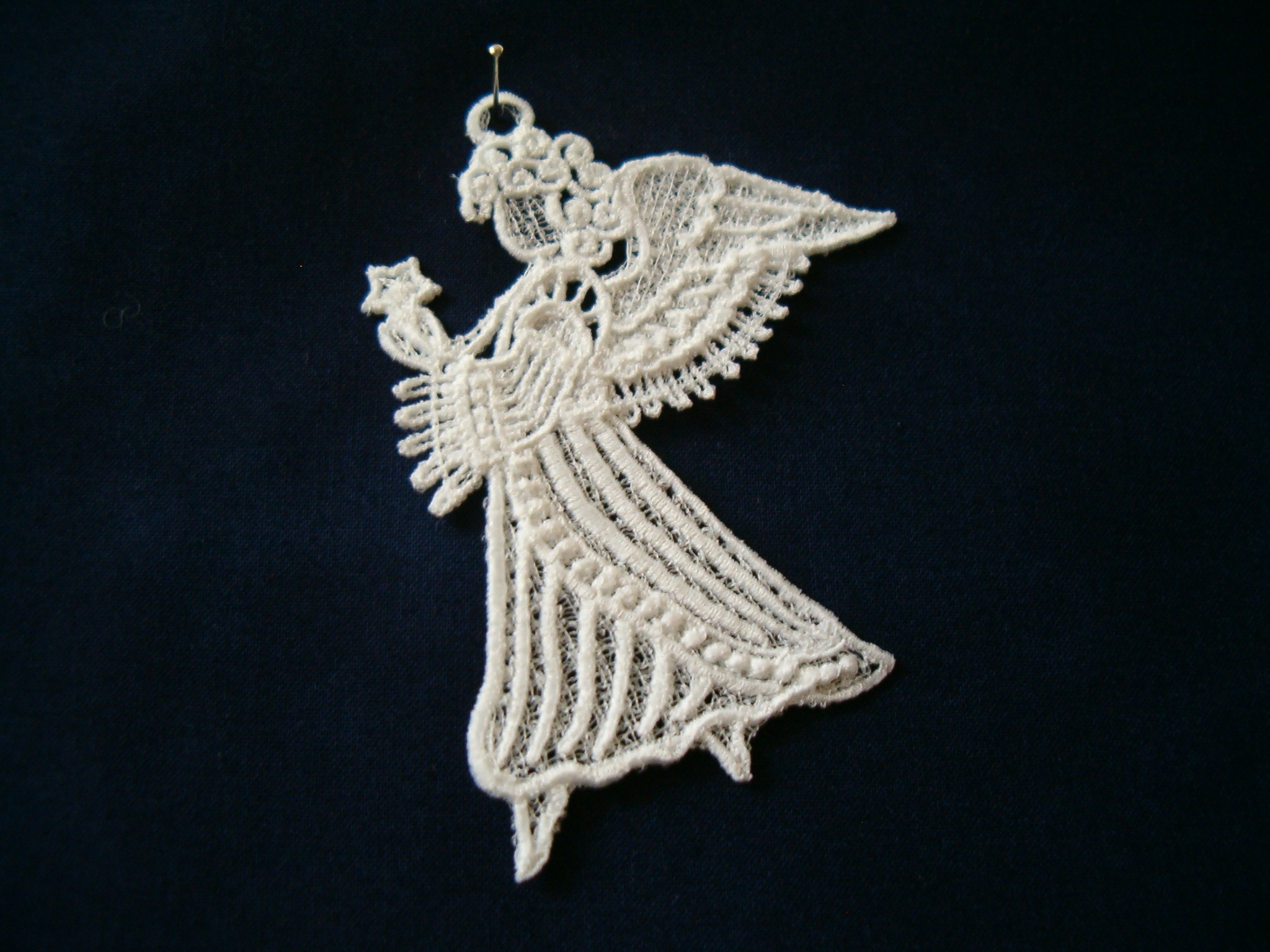 Jedná se o produkt strojového vyšívání, tzv. strojová krajka. Výšivka je cca 10 cm vysoká se šňůrkou na zavěšení.