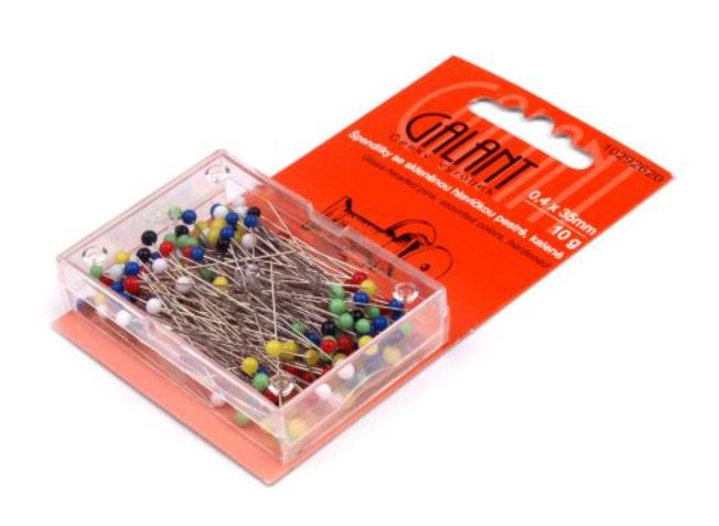 Špendlíky se skleněnou hlavičkou jsou velice tenké a vhodné ke špendlení těch nejtenších látek. Dobře se zapichují a drží v prstech.