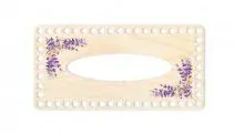 Dřevěné víko na výrobu háčkovaného obalu na kapesníky ze špagetových přízí. Motiv je vytištěn UV tiskárnou na víko z březové překližky.